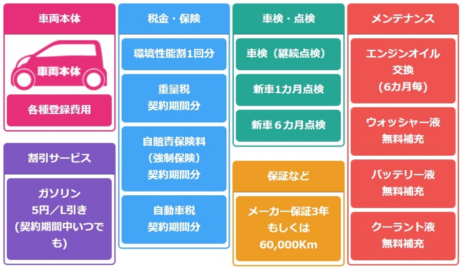 車検や税金等の維持費による出費の増減がなく、毎月定額払いで利用が可能