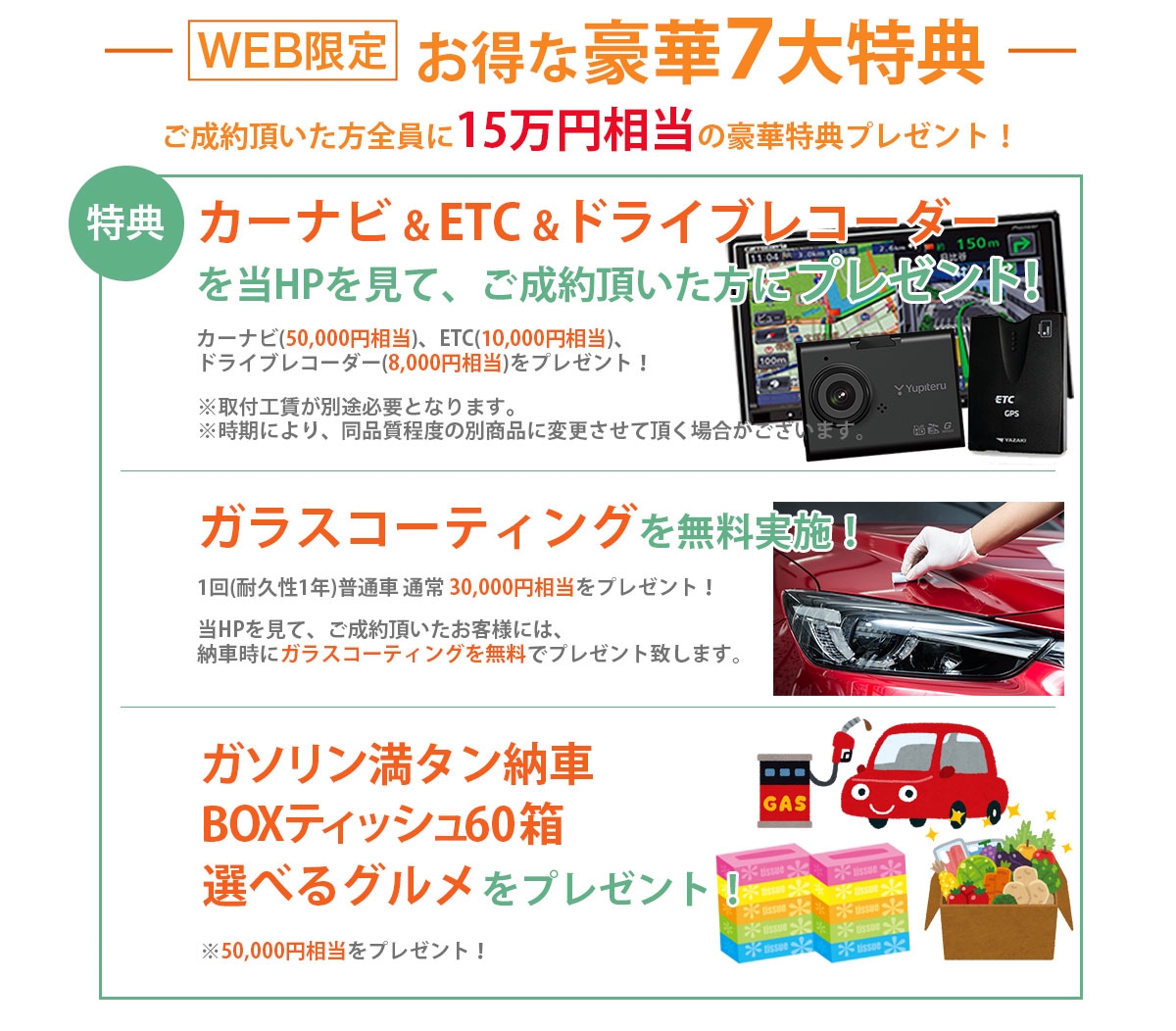 当HPのお得な特典!ナビ・ドラレコ・ETC プレゼント!ガラスコーティング付!
